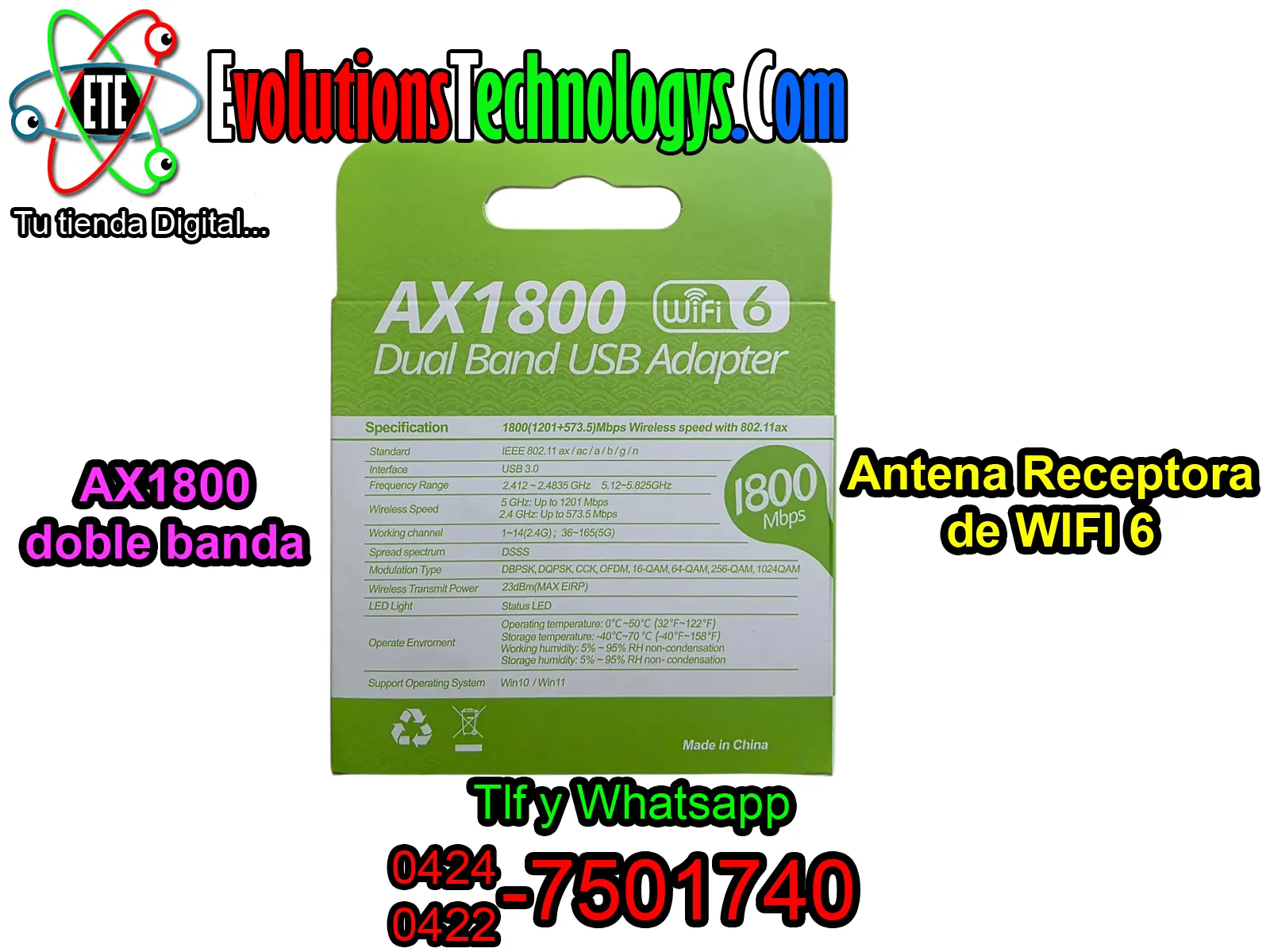 📶🔥 ANTENA WIFI 6 DUAL BAND AX1800 🔥📶 🚀 VELOCIDAD EXTREMA 1800MBPS - ¡IDEAL PARA TU PC Y LAPTOP! 🚀