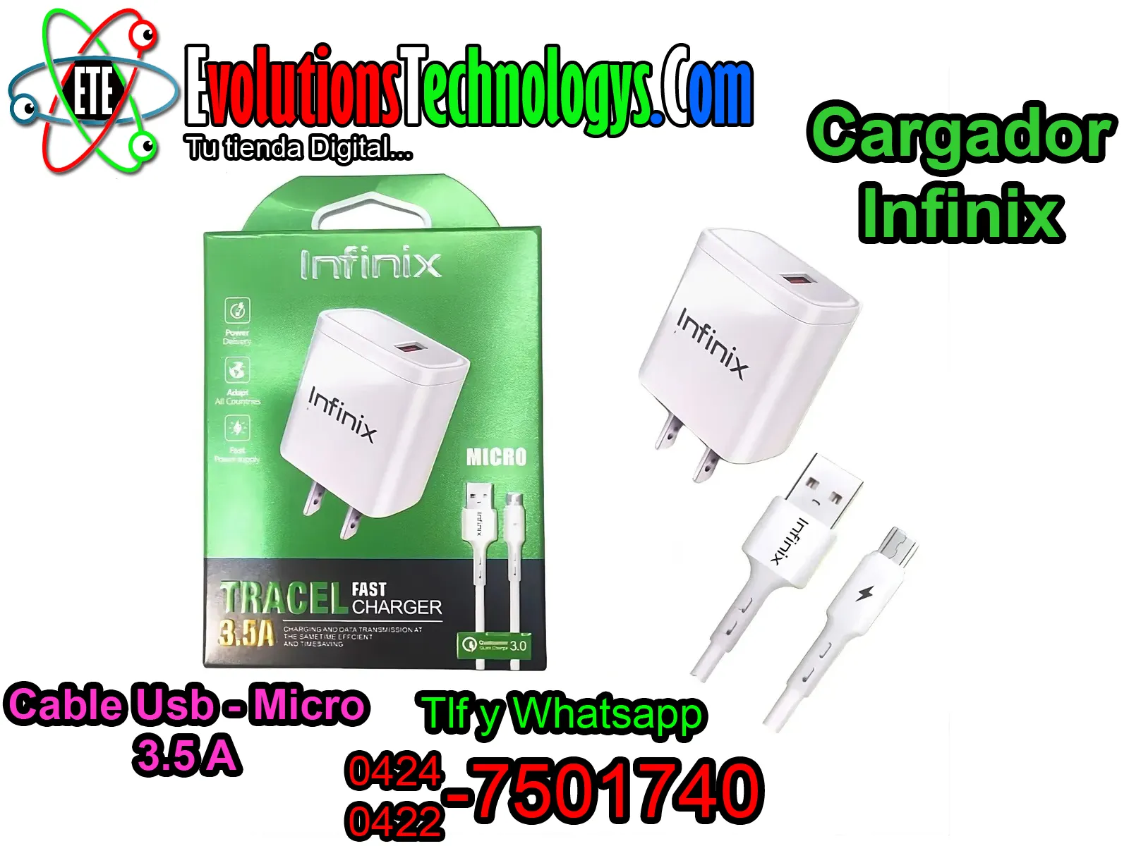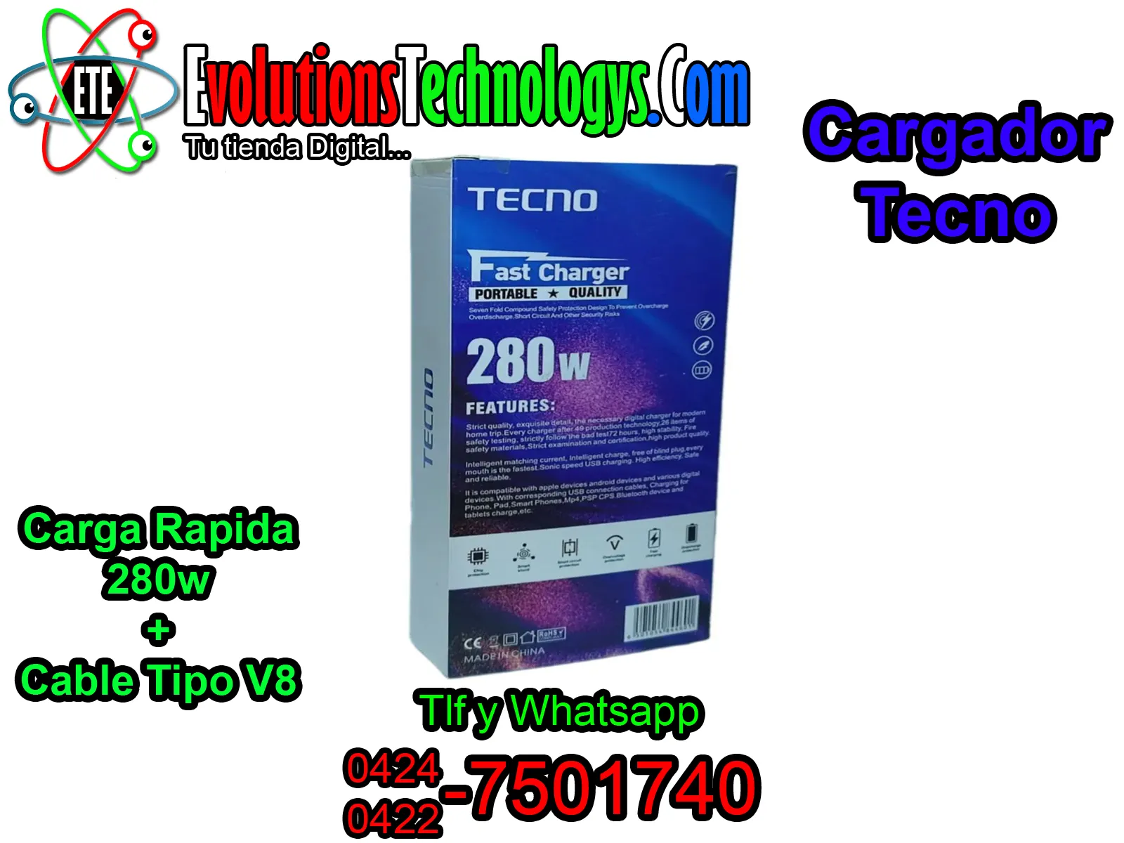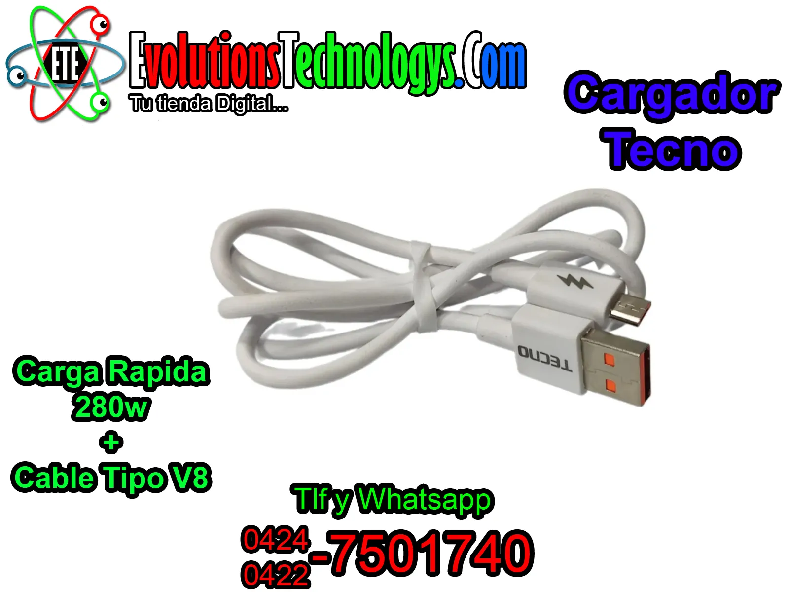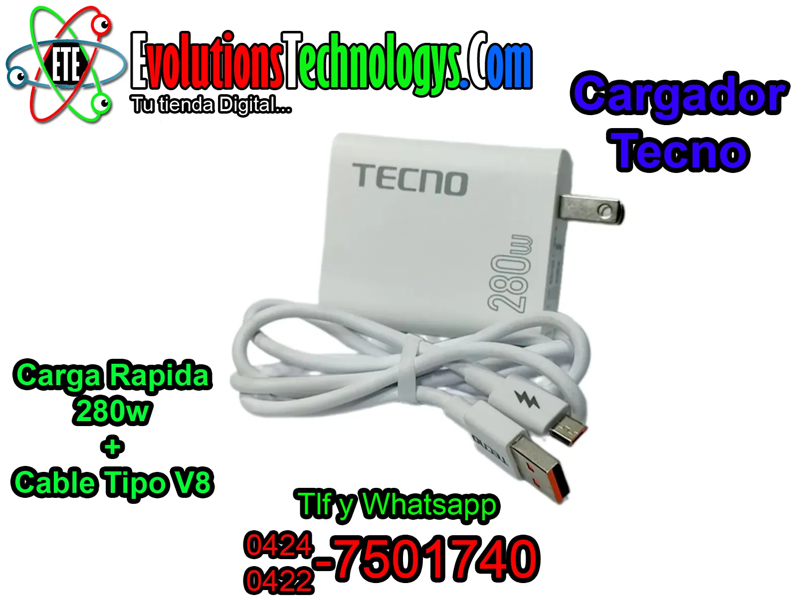 ⏱️ Gracias a su enorme capacidad de transferencia, este cargador garantiza que tu equipo reciba el 100% de la energía que puede soportar, reduciendo los tiempos de espera al mínimo. 🔌 Es el accesorio ideal para smartphones Tecno, tablets y cualquier dispositivo con puerto V8 que exija un rendimiento superior y seguro. ¡Potencia pura en tus manos! 🔋✨ ✨ CARACTERÍSTICAS DESTACADAS ✨