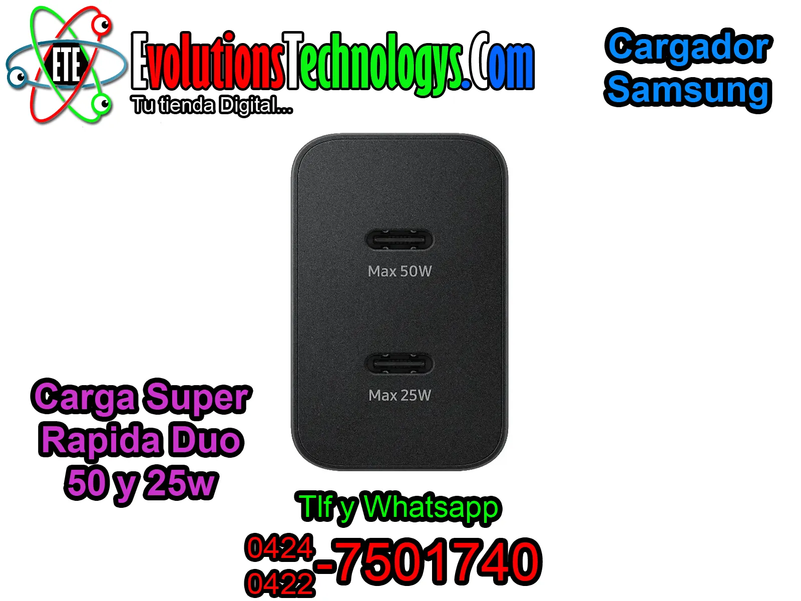 ¡Lleva la velocidad de carga al límite profesional! El Cargador Samsung de 50W es la solución definitiva para quienes necesitan potencia máxima sin esperas. Este adaptador de alta eficiencia permite cargar tus dispositivos de gama alta en tiempo récord, manteniendo siempre la integridad de tu batería. Es el accesorio ideal para usuarios de smartphones Ultra, tablets y laptops que exigen un rendimiento superior. ¡No vuelvas a quedarte sin energía en el momento más importante!