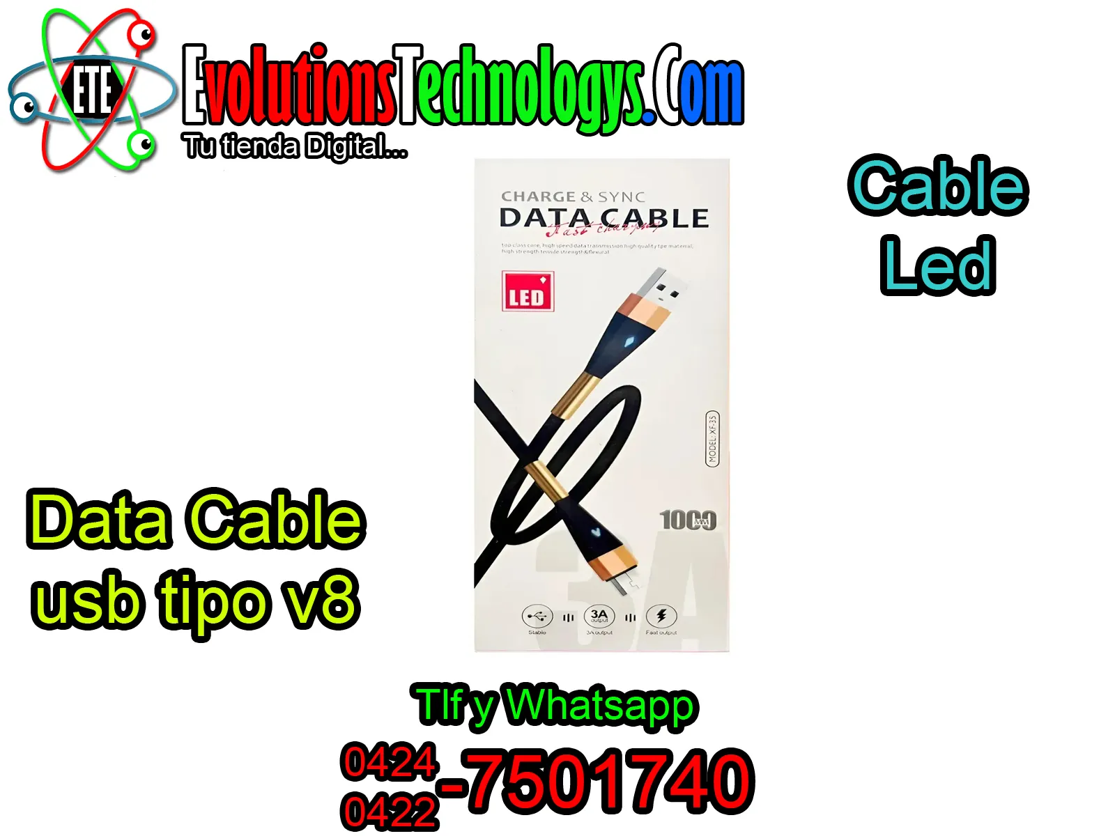 🌈🔌 CABLE LED TIPO V8 - CONEXION CON ESTILO 🔌🌈 🚀 ¡CARGA TUS DISPOSITIVOS CON UN FLUJO DE LUZ ESPECTACULAR! 🚀