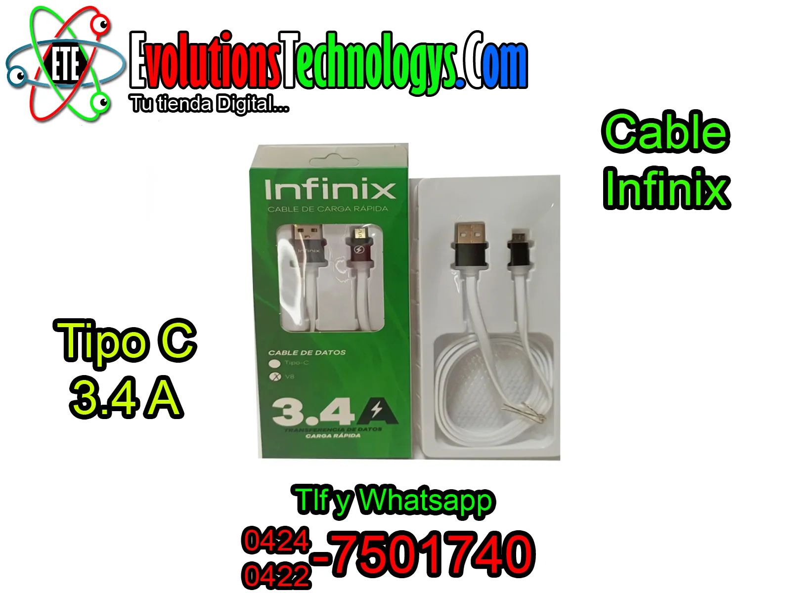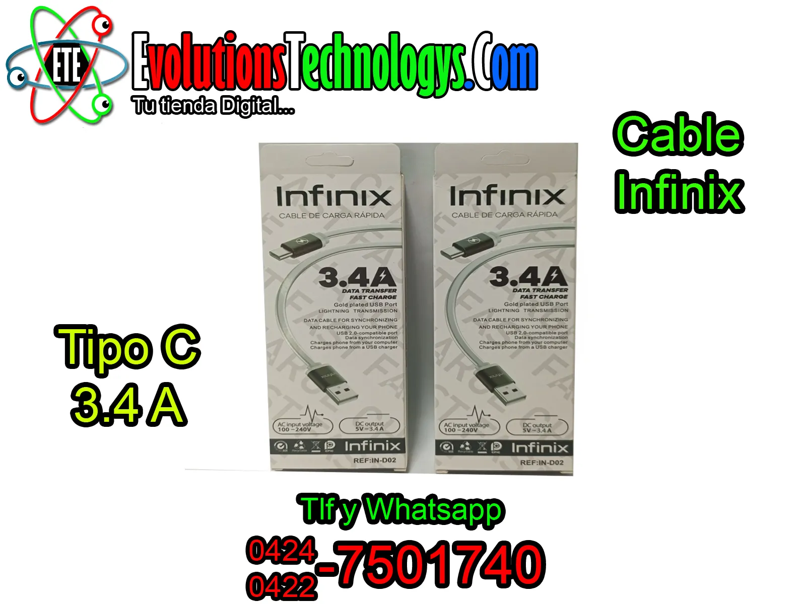 ⚡🔌 CABLE INFINIX TIPO C - POTENCIA DE 3.4A 🔌⚡ 🚀 ¡CARGA RAPIDA REFORZADA Y TRANSMISION DE DATOS ULTRA FLUIDA! 🚀