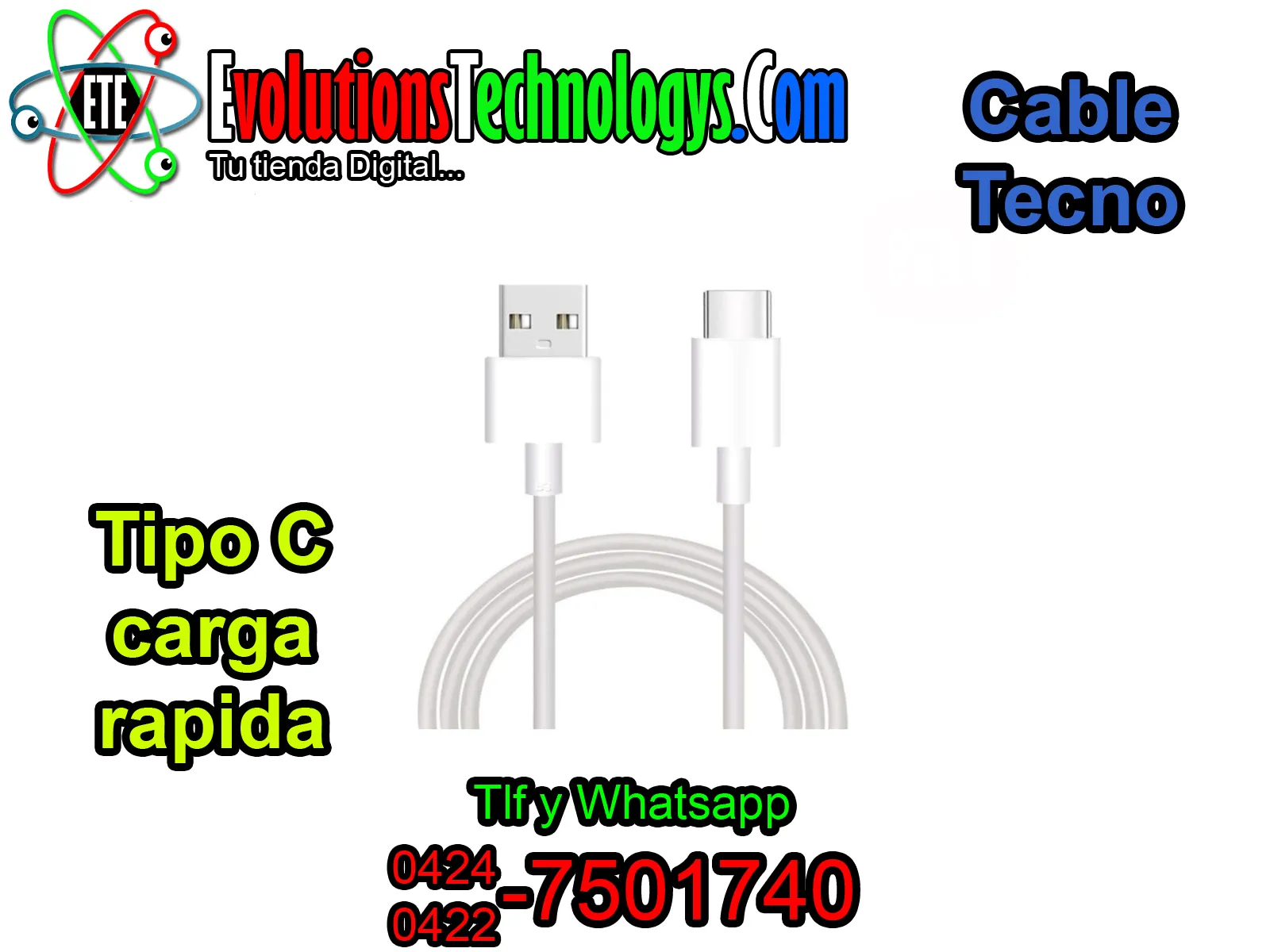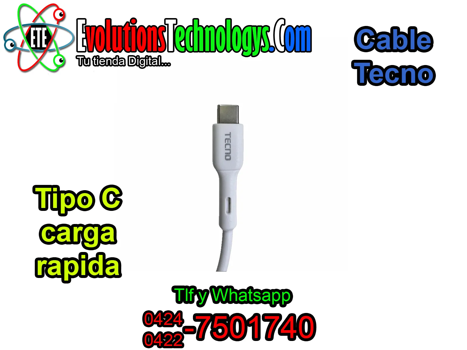 📱⚡ CABLE TECNO TIPO C - CARGA RAPIDA ⚡📱 🚀 MAXIMA VELOCIDAD Y RESISTENCIA PARA TU SMARTPHONE 🚀