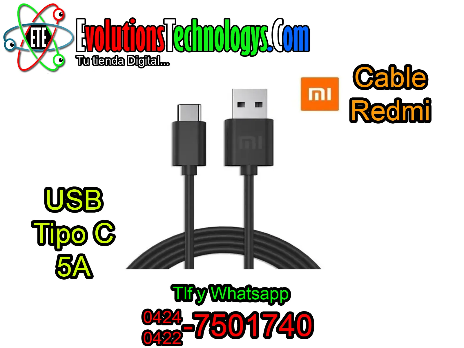 ⚡🔌 CABLE USB TIPO C REDMI - POTENCIA DE 5A 🔌⚡ 🚀 ¡CARGA ULTRA RAPIDA Y ESTABILIDAD TOTAL PARA TU XIAOMI! 🚀