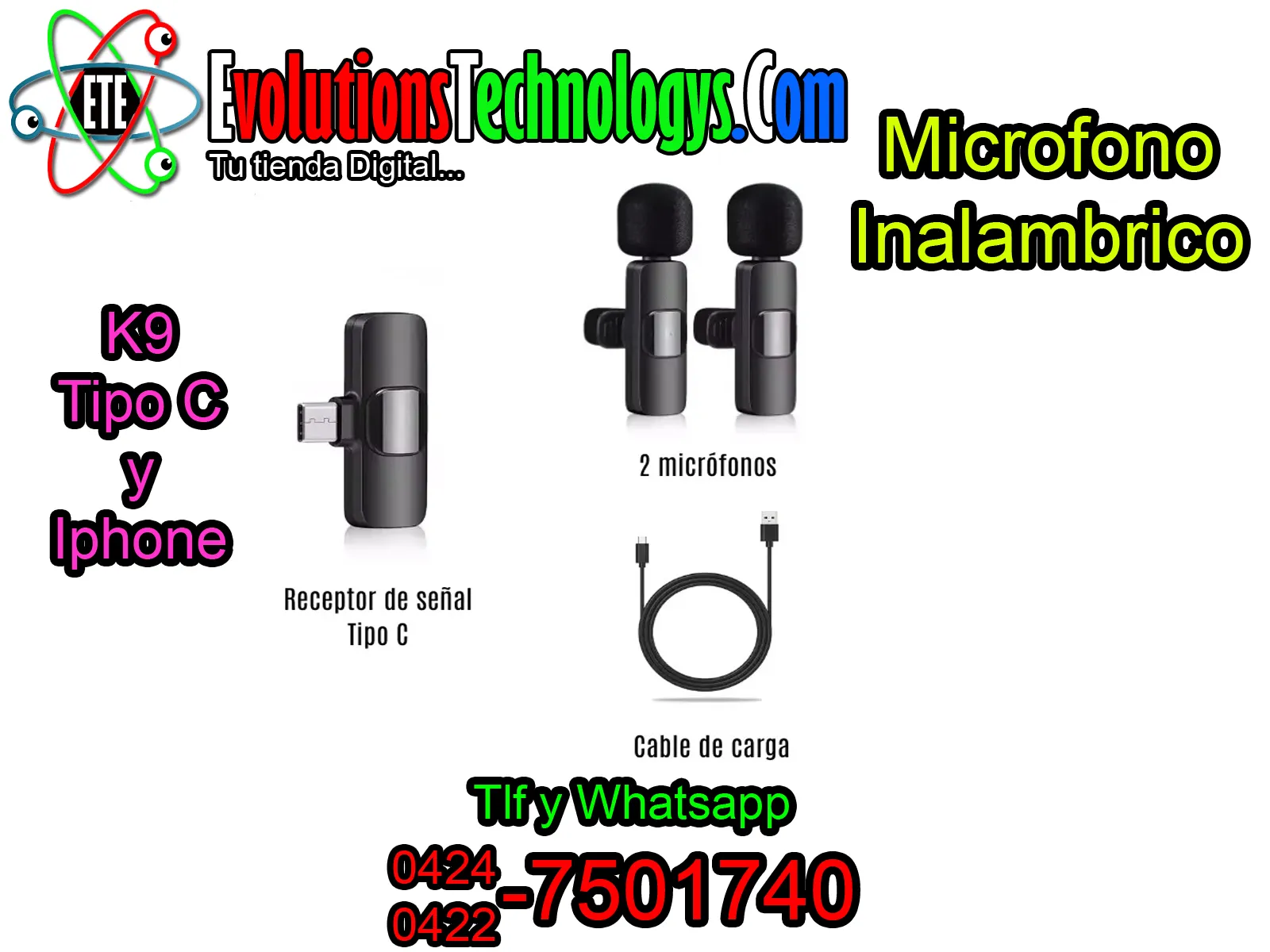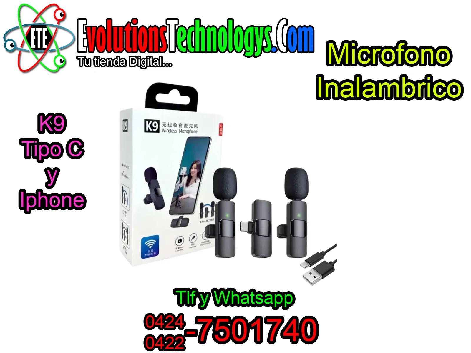 🎙️ MICRÓFONO INALÁMBRICO K9 DOBLE | ADAPTADOR TIPO-C E IPHONE