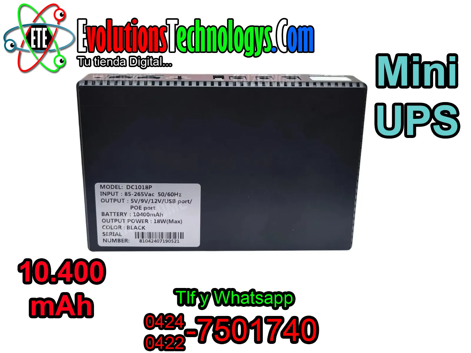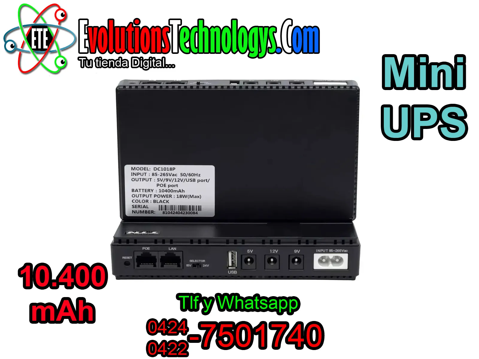 🔋⚡ MINI UPS DC1018P - RESPALDO DE ENERGIA 10.400 MAH ⚡🔋 🚀 ¡MANTEN TU INTERNET SIEMPRE ACTIVO SIN CORTES! 🚀