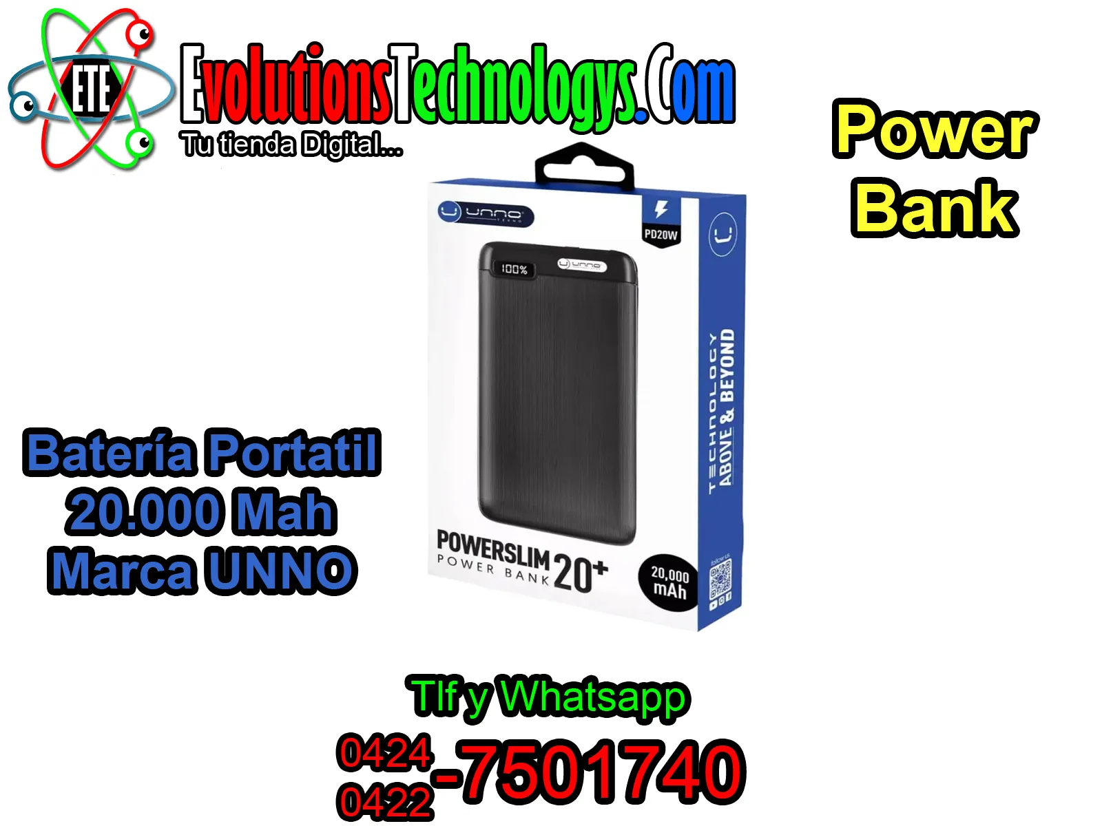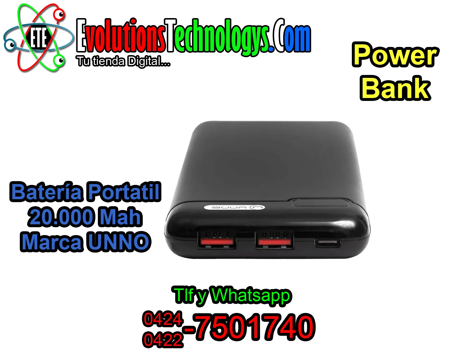 ¡Lleva toda la potencia que necesitas en la palma de tu mano! 🚀 El Power Bank UNNO Tekno de 20.000 mAh es el cargador portátil definitivo para usuarios de smartphones de alta gama y dispositivos exigentes. ⏱️ Con una capacidad masiva, este equipo te permite cargar tu teléfono múltiples veces con una sola carga de la batería, asegurando que nunca te quedes sin energía durante tus viajes, jornadas de trabajo o aventuras. 🔌 Su tecnología de carga rápida inteligente detecta automáticamente los requerimientos de tu equipo para entregar la potencia exacta de forma segura y eficiente. ¡Es la solución perfecta para el estilo de vida digital más intenso! 🔋✨