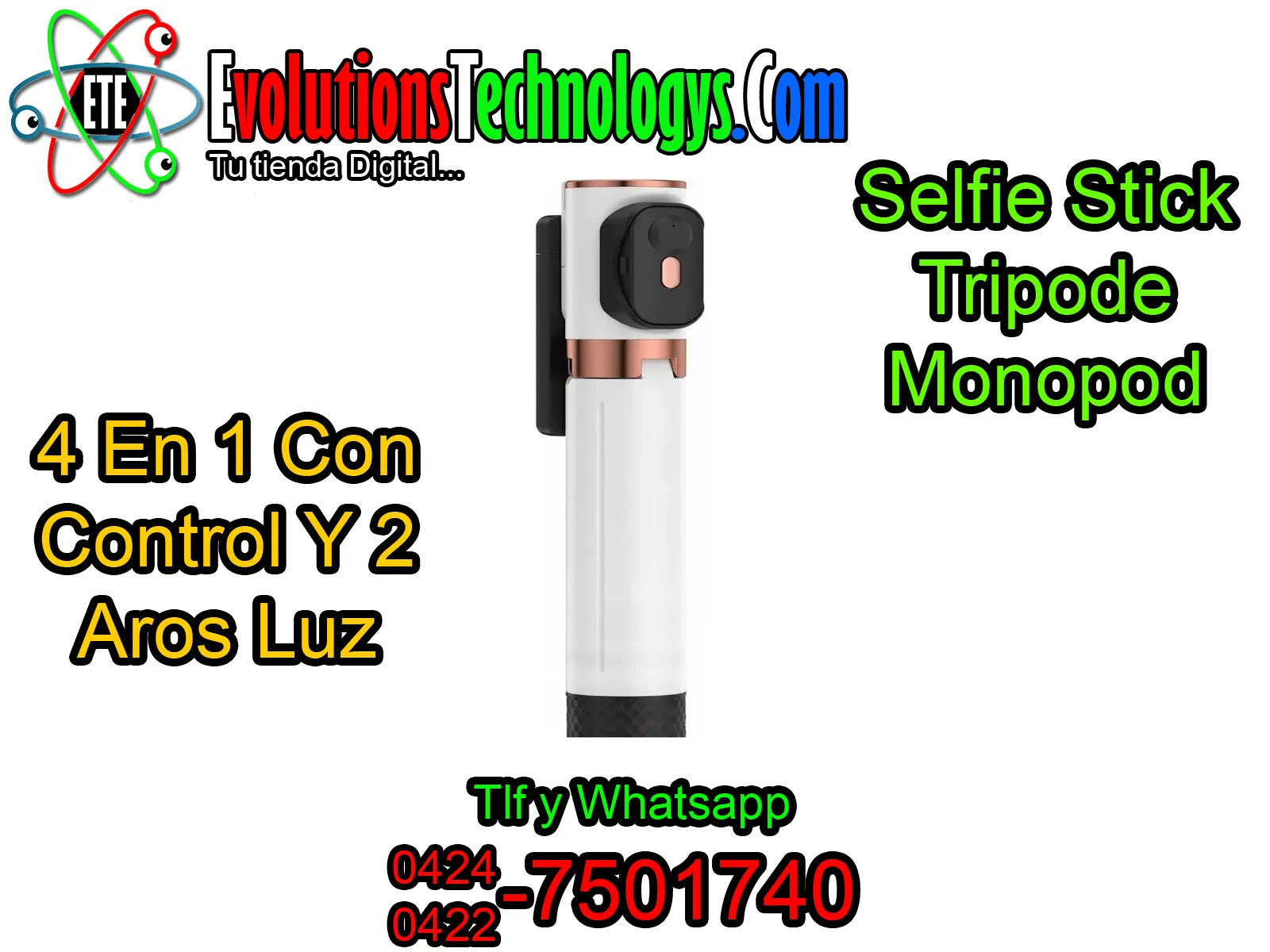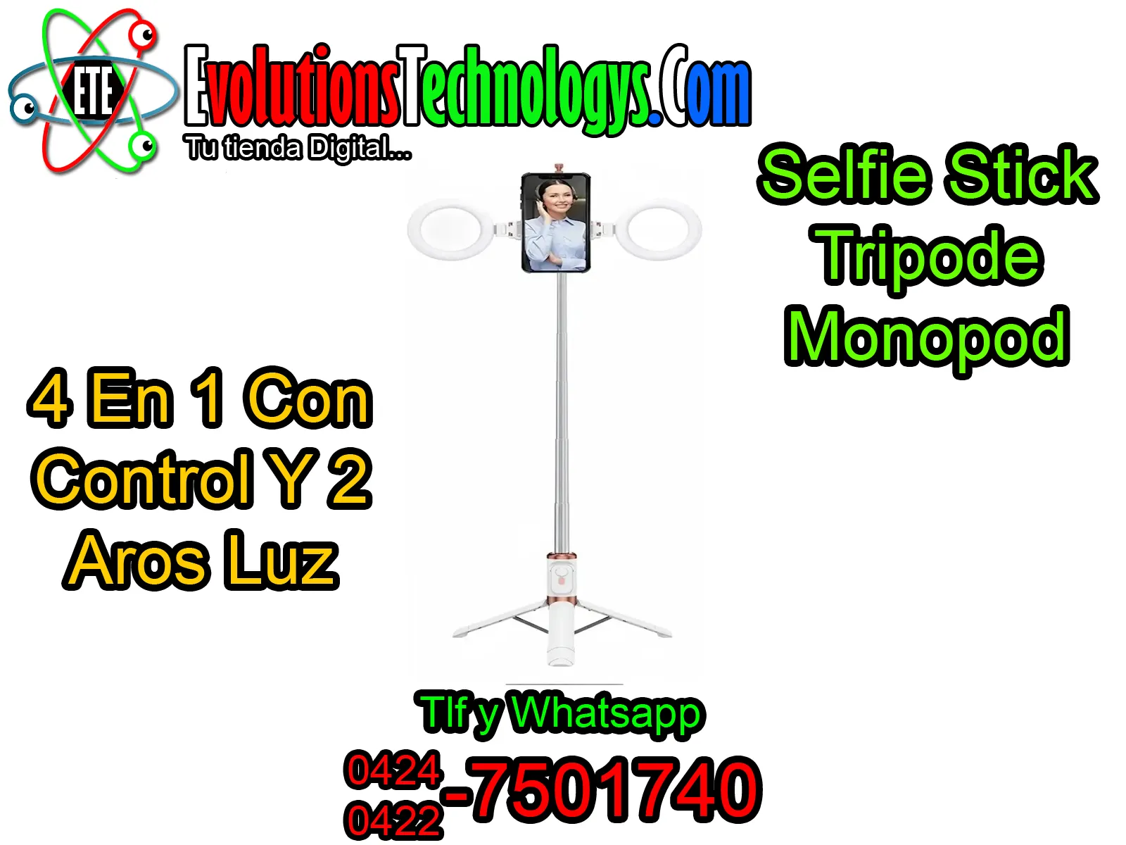¡Lleva tu contenido al nivel de los grandes influencers con el sistema de iluminacion mas completo! 🚀 Este Selfie Stick 4 en 1 no es solo un tripode, es una estacion de produccion integral. ⏱️ Su caracteristica mas poderosa son sus dos aros de luz LED integrados, que eliminan las sombras en tu rostro y resaltan cada detalle, garantizando una imagen nitida incluso en ambientes oscuros. 🔌 El diseño versatil te permite usarlo como un monopod extensible para selfies de gran angulo o desplegar sus patas reforzadas para convertirlo en un tripode de piso ultra estable. Incluye un control remoto Bluetooth desmontable para que dispares tus fotos o inicies tus videos a distancia sin ayuda de nadie. Con su cabezal giratorio, puedes pasar de formato vertical para TikTok a horizontal para YouTube en un segundo. ¡Es ligero, plegable y recargable, diseñado para ser el mejor aliado de creadores, maquilladores y viajeros! 🔋✨