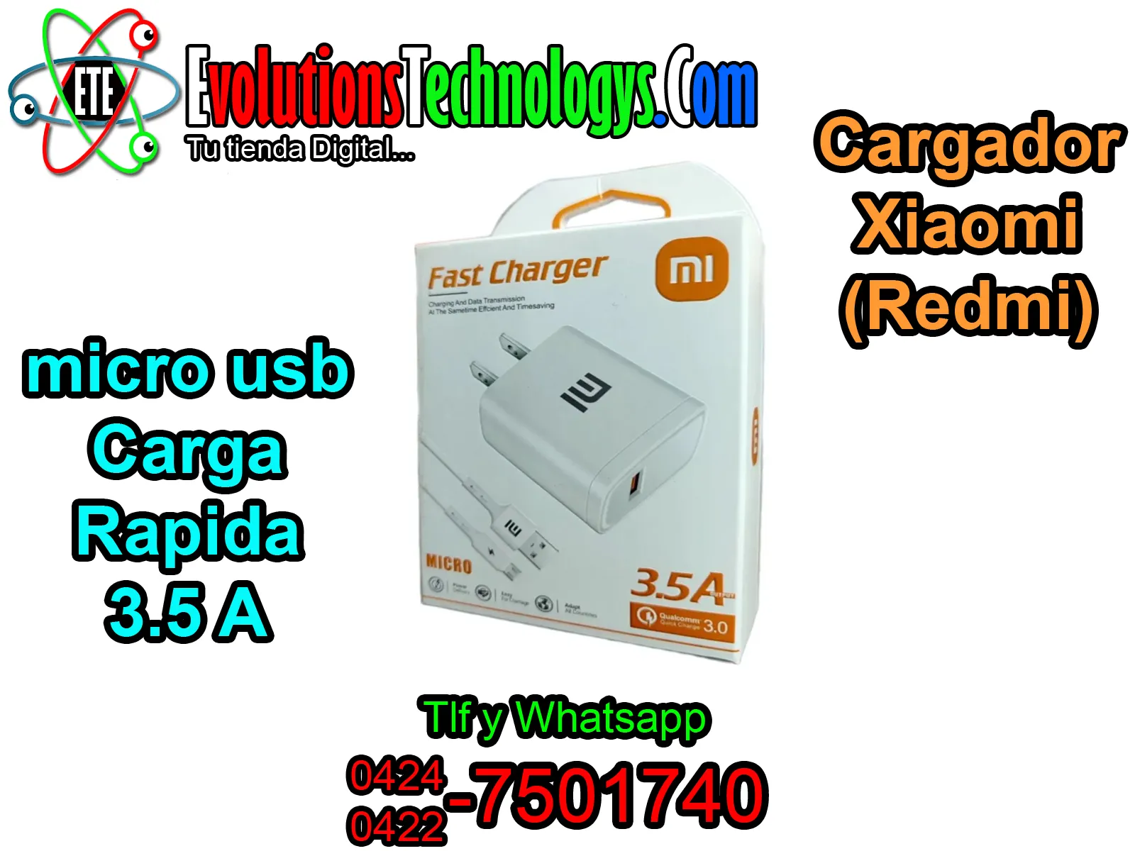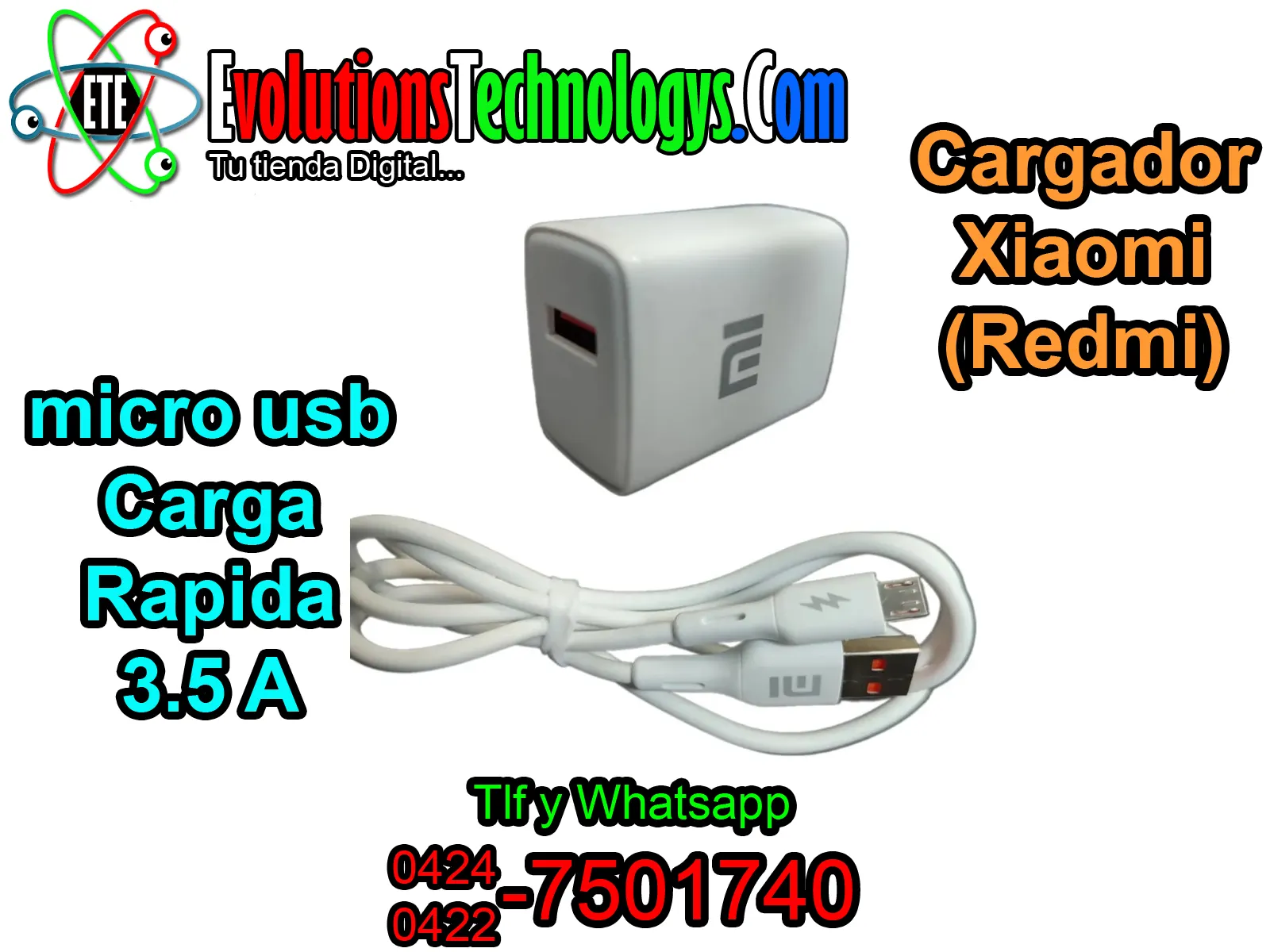 🔌⚡ CARGADOR XIAOMI REDMI MICRO USB (V8) ⚡🔌 🚀 3.5A TURBO CHARGE - POTENCIA Y VELOCIDAD 🚀