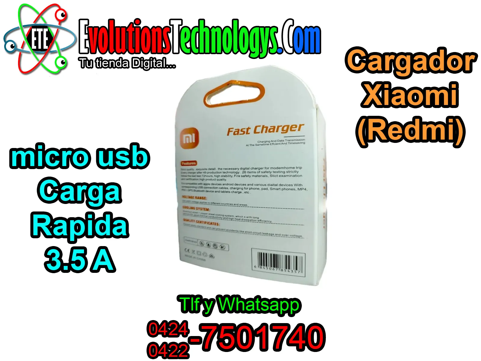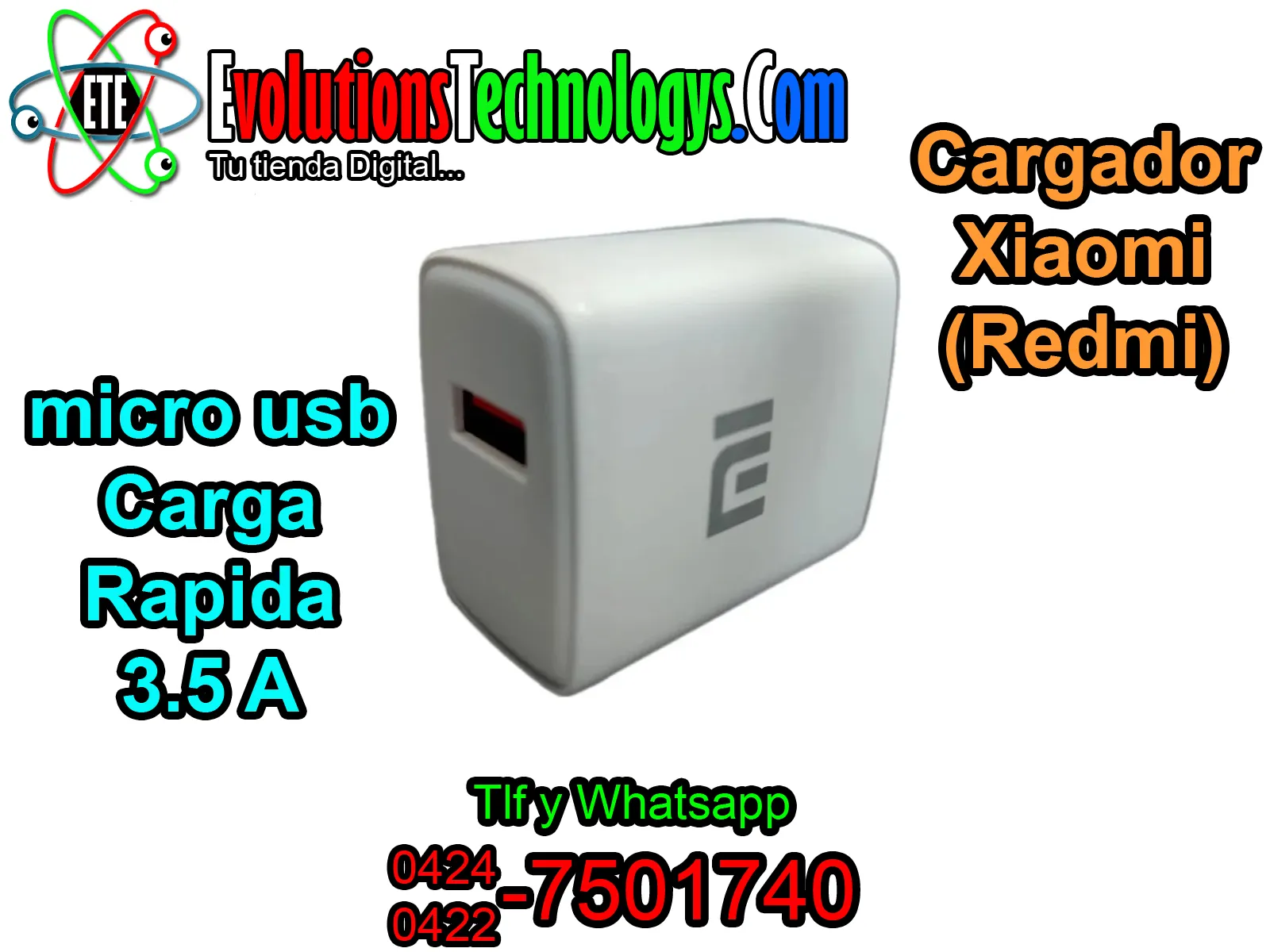¡Dale a tu Redmi la energía que necesita con la velocidad que te gusta! 🚀 El Cargador Xiaomi de 3.5A es la solución perfecta para dispositivos con puerto Micro USB (V8) que requieren una carga eficiente y estable. ⏱️ Gracias a su alto amperaje, este cargador reduce notablemente el tiempo de espera, permitiéndote volver a tus actividades en tiempo récord. 🔌 Es un accesorio robusto, seguro y diseñado para durar, ideal para mantener tu equipo siempre al 100% sin riesgos. 🔋✨