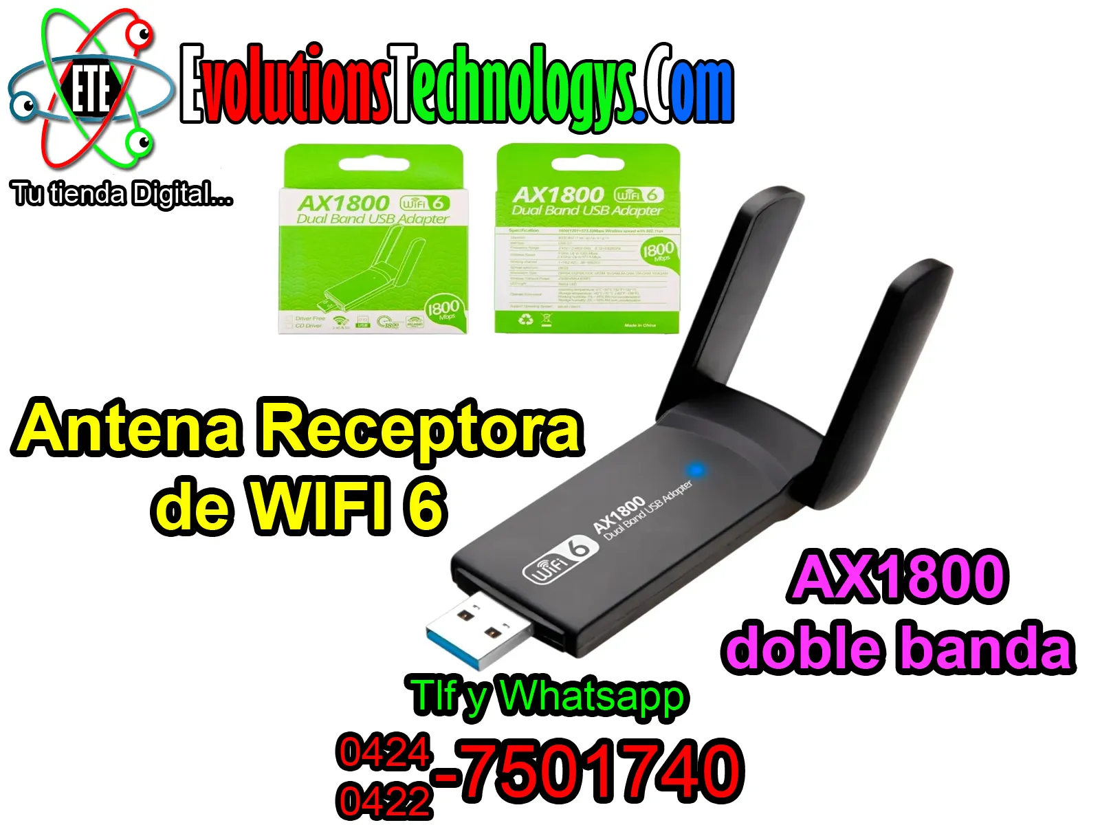📶🔥 ANTENA WIFI 6 DUAL BAND AX1800 🔥📶 🚀 VELOCIDAD EXTREMA 1800MBPS - ¡IDEAL PARA TU PC Y LAPTOP! 🚀