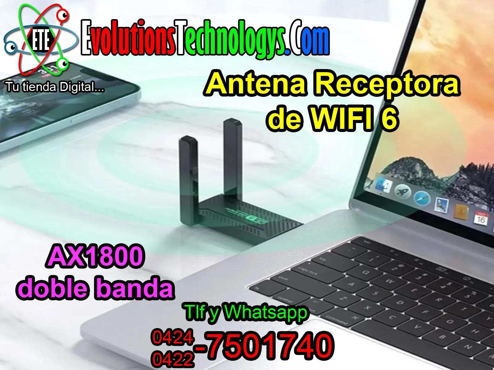 ¡Experimenta la velocidad definitiva y dile adiós a los cables de red! 🚀 Esta Antena WiFi 6 de 1800Mbps es la actualización más potente y necesaria que puedes darle a tu PC o Laptop. 💻 Gracias a su tecnología Dual Band (2.4GHz y 5GHz), podrás disfrutar de una conexión ultra fluida, eliminando por completo el lag en tus juegos competitivos, las interrupciones en Streaming 4K y la lentitud en videollamadas. 🎮🎬 Es la solución profesional para quienes exigen el máximo ancho de banda y una estabilidad total en su conexión inalámbrica. ¡Haz que tu equipo vuele! 🔌✨